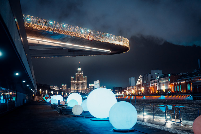 Но главная фишка парка — Парящий мост. Он буквально висит над Москвой-рекой на высоте 15 метров, без опор посередине. С него открывается красивейший вид на Кремль, высотку на Котельнической набережной и окрестности. Мост работает круглосуточно, так что можете прийти на рассвете (часов в 5-6 летом) — будете почти одни, плюс волшебный свет для фото.